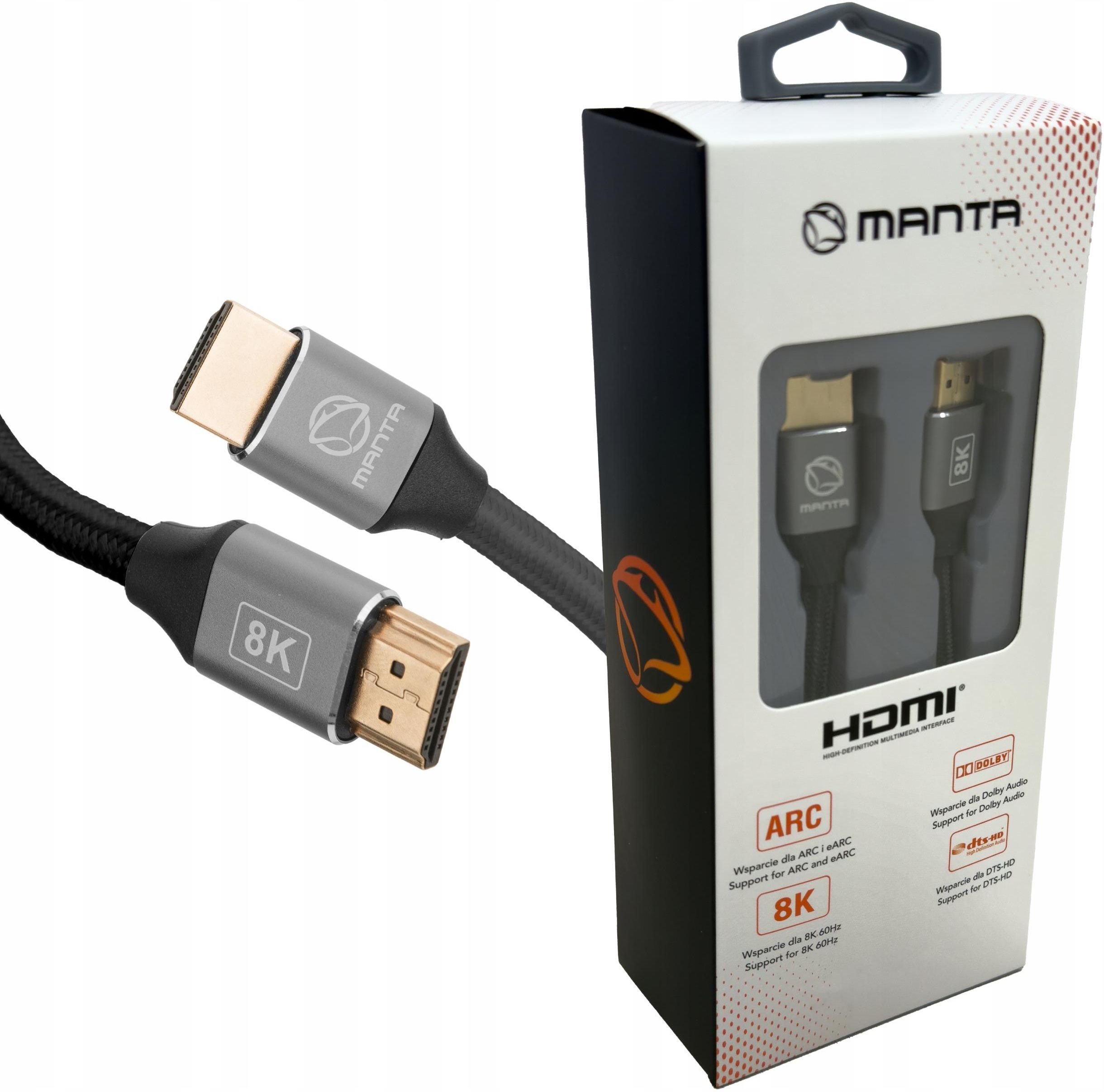 Manta Przewód Hdmi-hdmi 2 Metry 2.1 Certyfikat 8K Hdr Arc (HDMI2MC) Brok