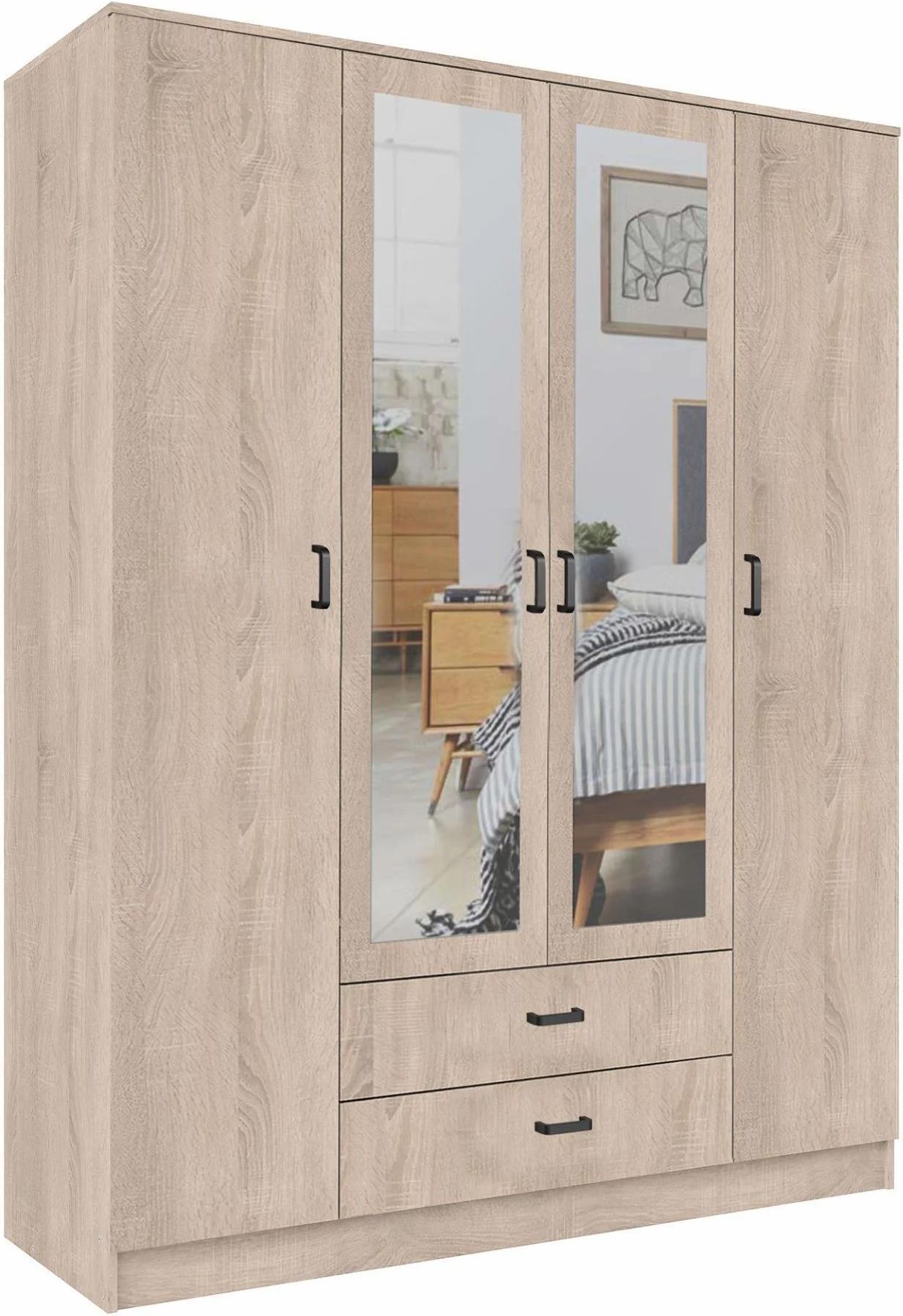 Mebel Bos Szafa Cento Ii 160X200 4D2S Dąb Sonoma Z Lustrem Brok