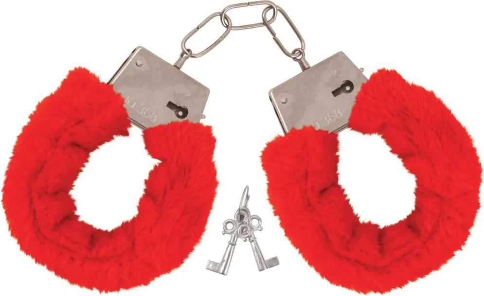 Kajdanki czerwone z futerkiem, idealne np. na wieczór panieński. Średnica wewnętrzna kajdanek: ok. 5 cm. Opakowanie zawiera kajdanki oraz dwa kluczyki.