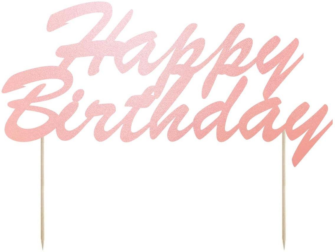 Napis Happy Birthday na pikach w kolorze różowym perłowym, idealna dekoracja tortu na urodziny. Dekoracja DIY. Wielkość: 20x10 cm. Długość patyczka: 11 cm. Opakowanie: 1 szt.