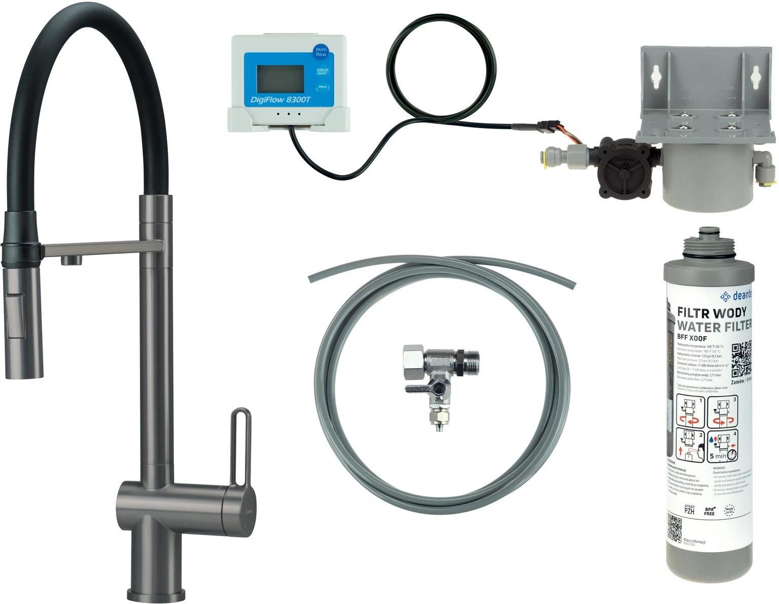 Bateria kuchenna DEANTE MAGNETIC z zestawem do filtracji wody titanium BRMFD75M Bateria kuchenna z zestawem do filtracji wody z elastyczną wylewką Bateria kuchenna Magnetic z systemem filtracji wody to wyjątkowe rozwiązanie, które łączy elegancję, funkcjonalność i troskę o zdrowie. Wykończona w …