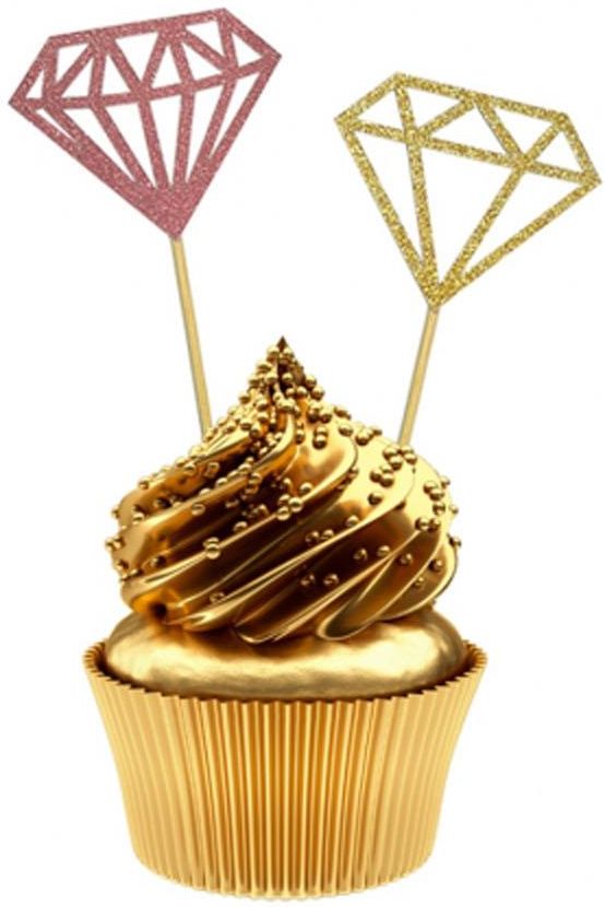 Jeżeli razem z koleżankami organizujecie wieczór panieński, to warto zaopatrzyć się w odpowiednie dekoracje. Te brokatowe pikery w kształcie diamentu w kolorze złotym i różowym z pewnością ozdobią słodkie wypieki na waszym imprezowym stole. Świetnie będą się prezentować wbite w muffinkę bądź inny torcik. doklejka topy Wieczór Panieński,GoDan,Godan kolekcja Bride to be,Godan kolekcja Wieczór Panieński,różowy,Wieczór Panieński,złoty