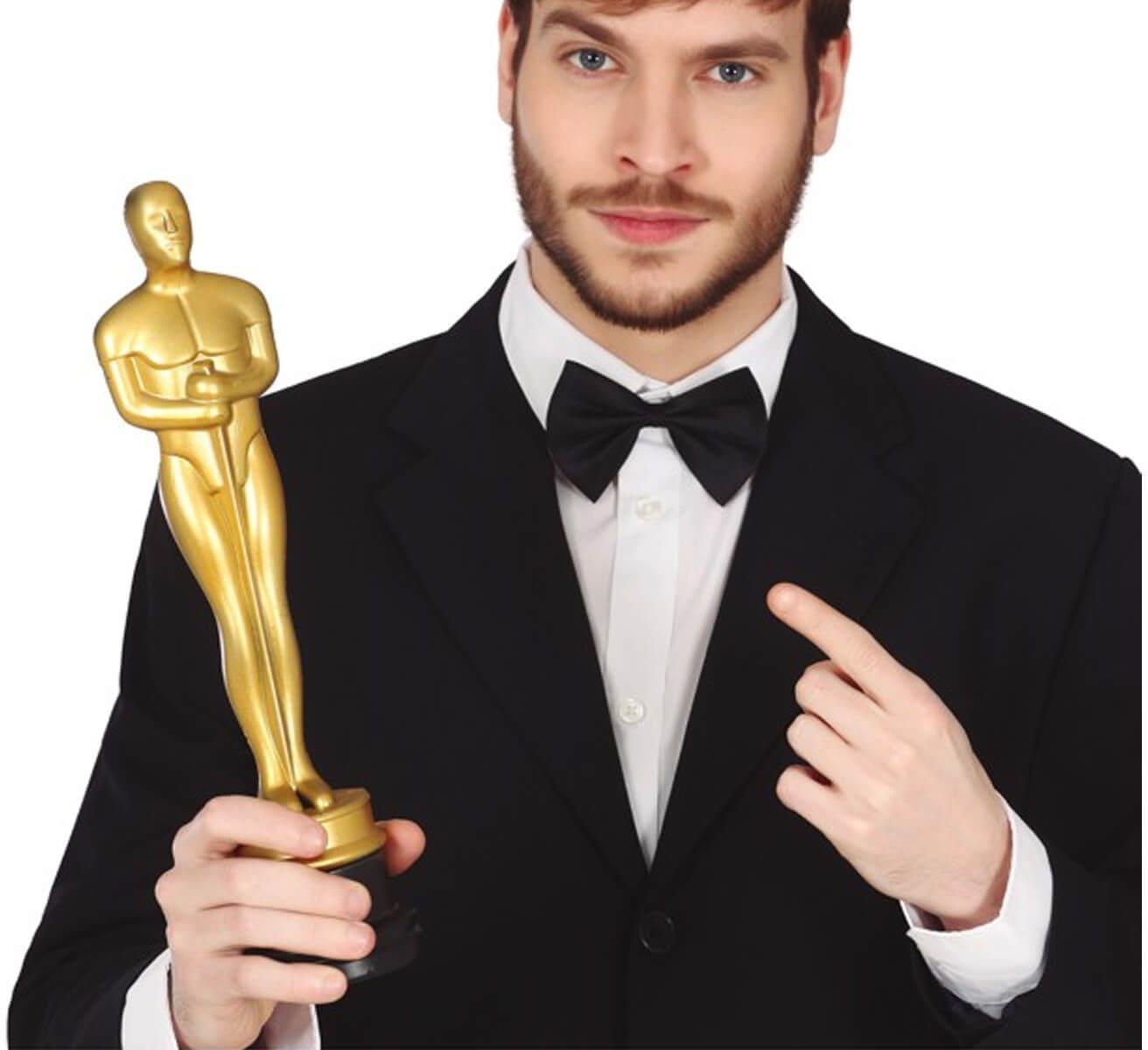 Statuetka filmowa, można wykorzystać jako nagroda za najlepszy strój na balu. Wysokość: 34 cm. Opakowanie: 1 szt.