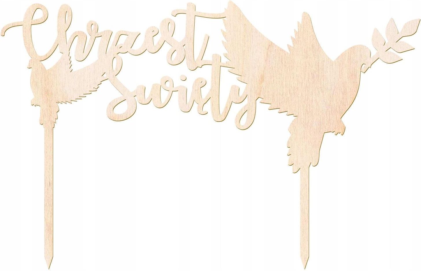 Dekoracja drewniana na piku na Chrzest Święty w kolorze naturalnym, idealna dekoracja tortu. Szerokość: 20 cm, Wysokość: ok 13 cm.