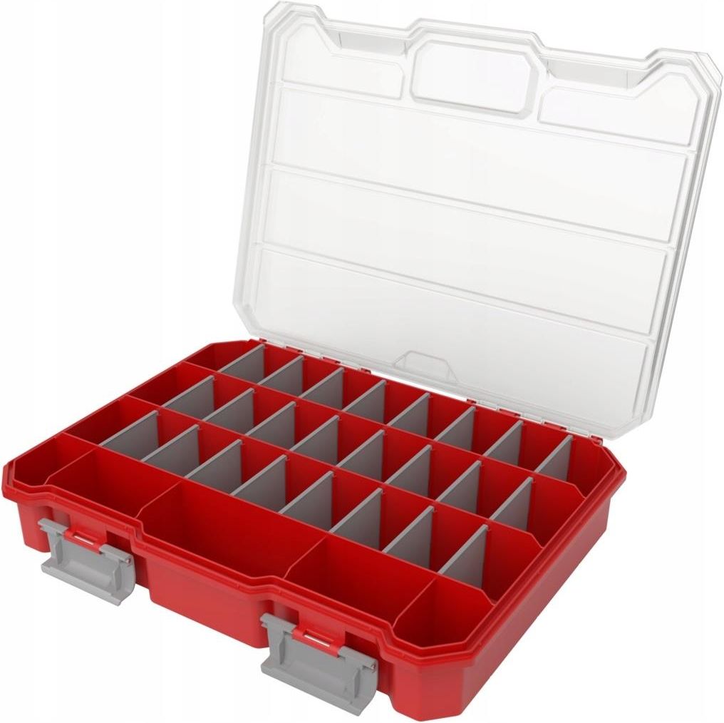 Organizer na narzędzia Qbrick Regular Compact Organizer L czerwony Qbrick Regular Organizer Compact L to odpowiedź na potrzeby profesjonalistów i majsterkowiczów, którzy cenią sobie porządek, trwałość i nowoczesne rozwiązania w miejscu pracy. Ten model, łączy w sobie wysoką funkcjonalność z kompaktowym rozmiarem, zapewniając wygodę użytkowania w każdych warunkach. Organizer został wyposażony w 24 regulowane przegrody, które można dowolnie konfigurować. Dzięki temu użytkownik ma możliwość stworzenia nawet 32 niezależnych komór. Taka elastyczność pozwala na idealne dopasowanie przestrzeni do różnego rodzaju akcesoriów – od drobnych śrubek po bardziej złożone elementy robocze. Warto zwrócić uwagę na pełną przezroczystość pokrywy, która znacznie ułatwia szybkie lokalizowanie potrzebnych narzędzi bez konieczności otwierania organizera. To nie tylko oszczędność czasu, ale też sposób na zachowanie większego porządku podczas pracy. Solidna konstrukcja, odporna na trudne warunki Qbrick Regular Organizer Compact L został zaprojektowany z myślą o trwałości. Jego konstrukcja cechuje się: odpornością na zachlapania wodą, ochroną przed wnikaniem pyłu, solidnymi zapięciami przednimi, które gwarantują bezpieczne zamknięcie, metalowymi trzpieniami w zawiasach, zapewniającymi stabilność i długowieczność. Takie rozwiązania sprawiają, że organizer jest gotowy do pracy zarówno w warsztacie, na budowie, jak i w trudniejszych warunkach zewnętrznych. Wymiary zewnętrzne: 290 × 220 × 54 mm Organizer zajmuje niewiele miejsca, a jednocześnie oferuje dużą pojemność roboczą. Idealnie nadaje się do przechowywania i transportowania drobnych elementów montażowych, końcówek, wkrętów czy złączek. Co więcej, organizer doskonale współgra z innymi produktami z serii Qbrick Regular, tworząc spójny i modułowy system do zarządzania narzędziami. Dla osób zainteresowanych rozszerzeniem zestawu, warto sprawdzić również pełną ofertę organizerów Qbrick Regular.