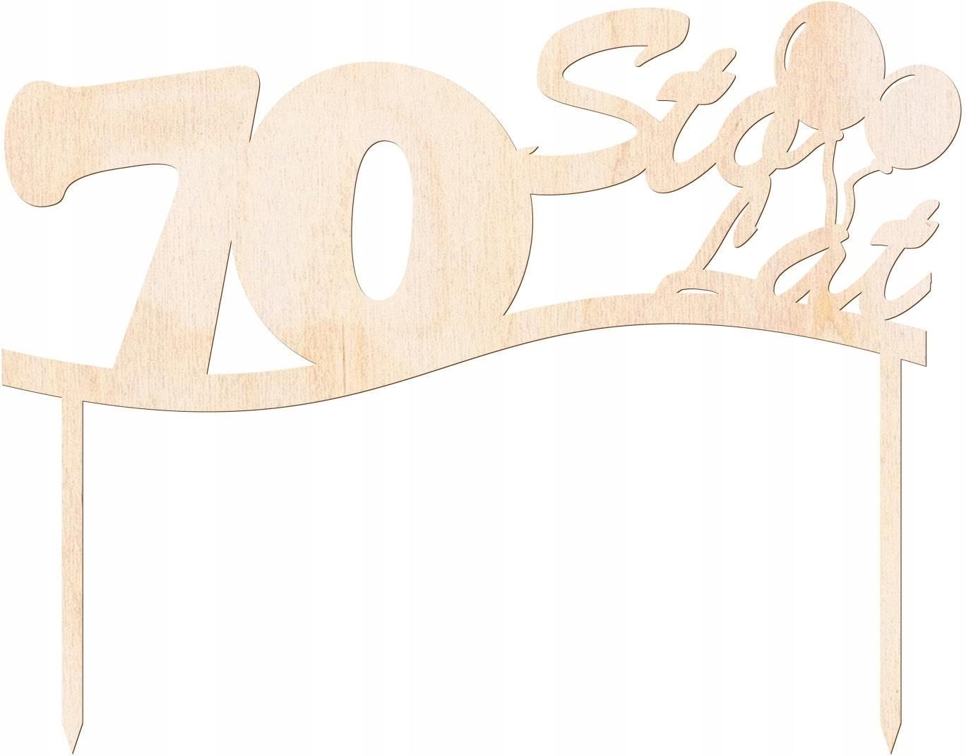 Topper drewniany na tort 70 urodziny 19 cm Brusy