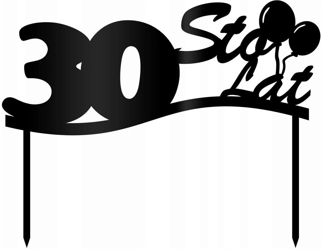 Topper z liczbą 30 i napisem sto lat, idealna dekoracja tortu na 30 urodziny. Rozmiar: 19x15 cm. Opakowanie: 1 szt. Kolor: czarny poysk. Materiał: pleksiglas, bardzo mocny i wytrzymały. Materiał posiada certyfikat do kontaktu z żywnością.