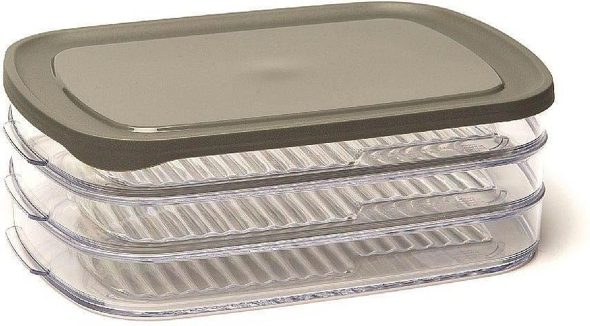 Pojemnik na wędliny do lodówki o piętrowej konstrukcji to idealne rozwiązanie do przechowywania różnych rodzajów wędlin w efektywny sposób. Zapewnia optymalne warunki przechowywania oraz umożliwia wykorzystanie dostępnego miejsca wewnątrz lodówki. Pojemnik został zaprojektowany i wykonany w Belgii z bezpiecznego dla zdrowia tworzywa BPA Free i posiada certyfikat BRC do kontaktu z żywnością. Posiada 3 poziomy, dzięki temu można przechowywać różne rodzaje wędlin oddzielnie, zapobiegając tym samym wzajemnemu przenikaniu się aromatów. Każdy poziom pojemnika jest wyposażony w wygodne boczne uchwyty, dzięki którym można łatwo otworzyć i zamknąć poszczególne poziomy, aby dostać się do konkretnej wędliny bez konieczności wyjmowania innych. Pojemnik jest łatwy do czyszczenia i utrzymania w higienicznych warunkach. Można go myć w zmywarce lub ręcznie. Pojemność: 3 x 750 ml (0,75L)