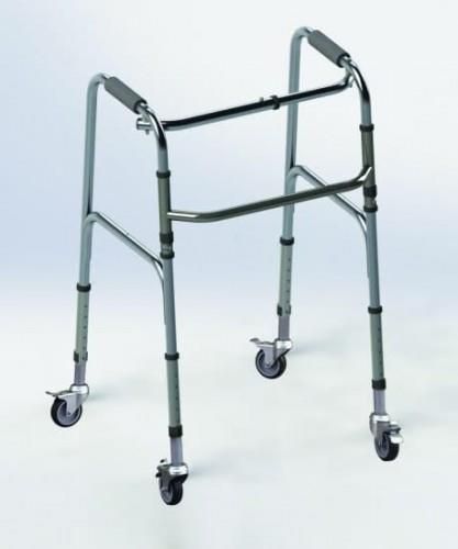 Balkonik / chodzik stały z kółkami to sprzęt medyczny pomocniczo – rehabilitacyjny.Jego głównym przeznaczeniem jest pomoc przy wstawaniu, staniu i chodzeniu dla osób o ograniczonej sprawności ruchowej. Może być wykorzystywany do pionizacji, odciążania kończyn dolnych, nauki chodzenia. Główne cechy: - 4 kółka skrętne pozwalają na płynne przetaczanie balkonika bez konieczności podnoszenia go oraz łatwą zmianę kierunków; - Hamulce na tylnych kółkach poprawiają bezpieczeństwo i komfort użytkowania; - Składana konstrukcja ramy ułatwia przechowywanie i transport; - Lekka aluminiowa konstrukcja (masa całkowita balkonika 4,2 kg); - Rama aluminiowa anodowana co zwiększa odporność jej powierzchni na drobne uszkodzenia; - Regulowana wysokość (skokowo co 2,5 cm) pozwalająca dostosować balkonik do wymagań użytkownika (zakres od 87 do 99 cm); - Dodatkowe wzmocnienia poziome; - Ergonomiczne uchwyty do rąk; - Kółka o średnicy 7,5 cm, - Produkt medyczny, atestowany.