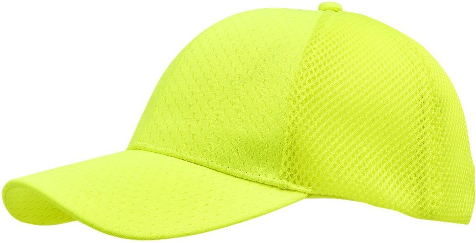 Wygodna czapka w fluorescencyjnym żółtym kolorze. Oddychająca siateczka i zapięcie na rzep dla lepszego dopasowania.
