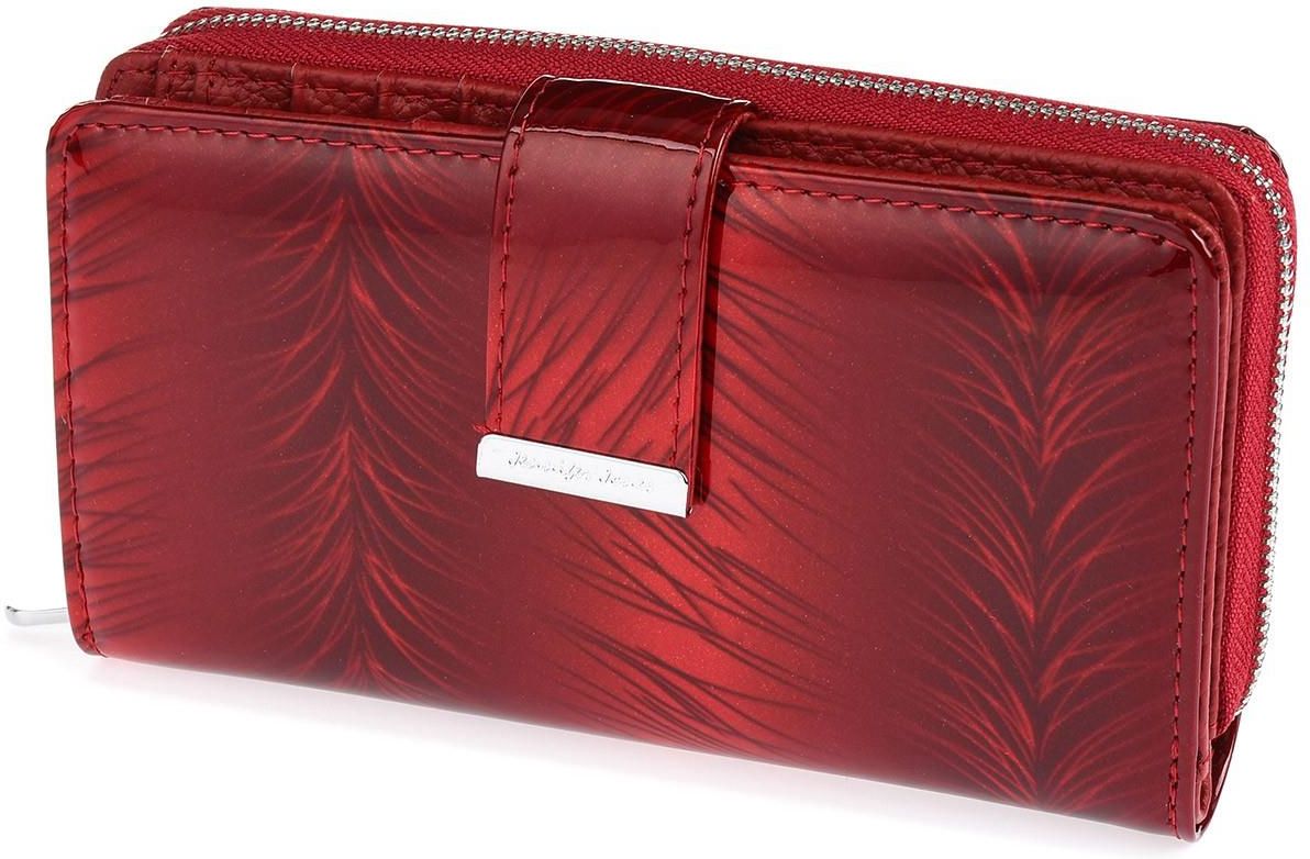 Czerwony skórzany portfel damski lakierowany duży poziomy w piórka elegancki Jennifer Jones E72 Brwinów