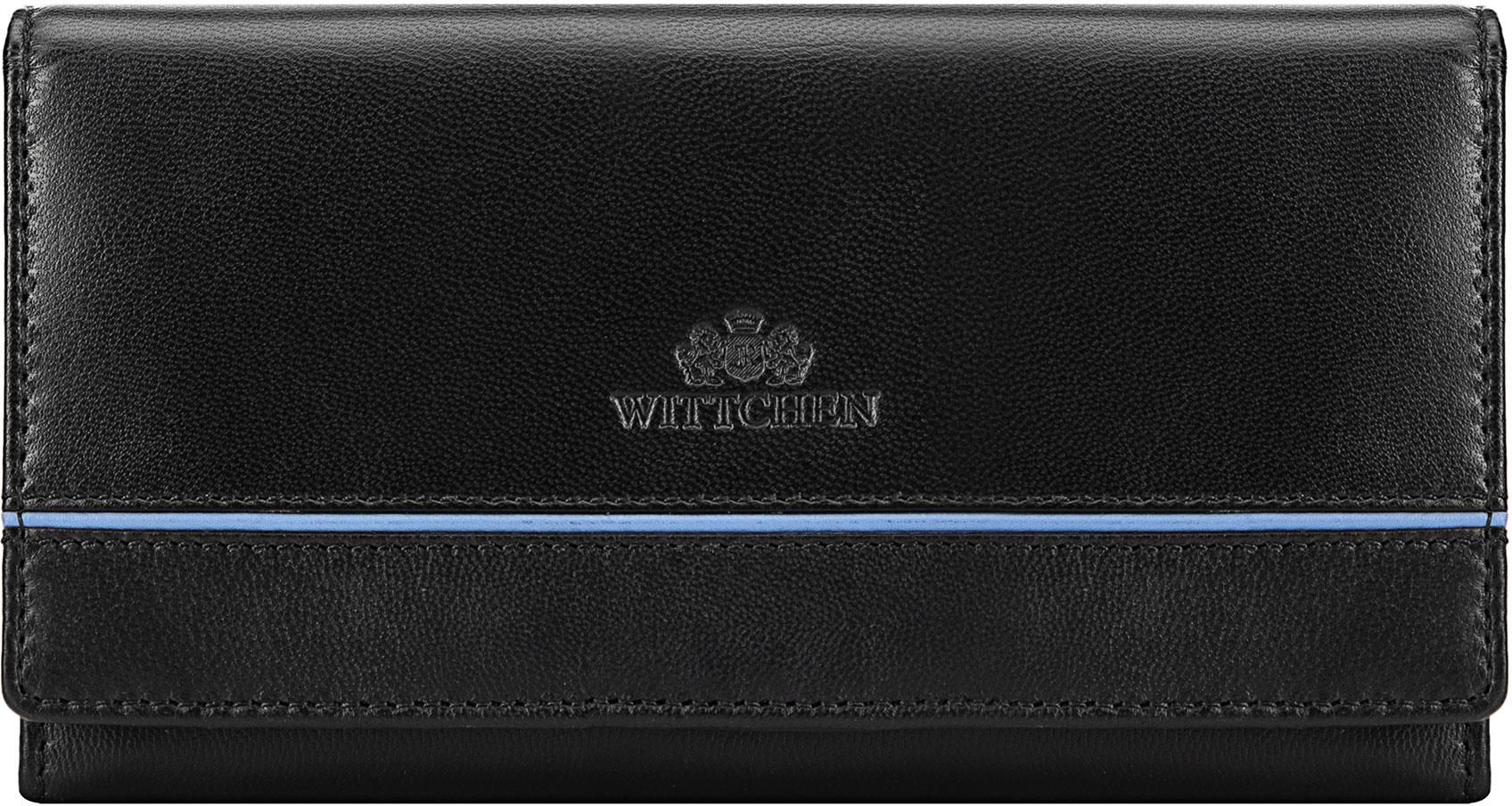 Damski portfel skórzany z kontrastowym paskiem czarny Brwinów