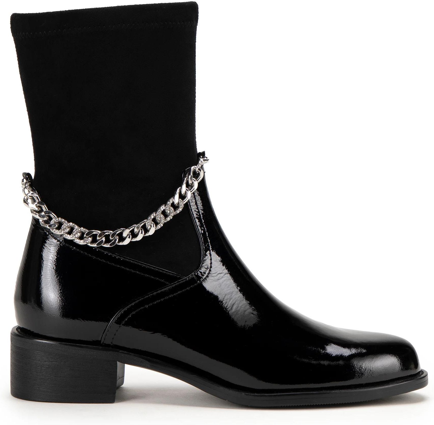Damskie botki skórzane z łańcuszkiem czarne Brwinów