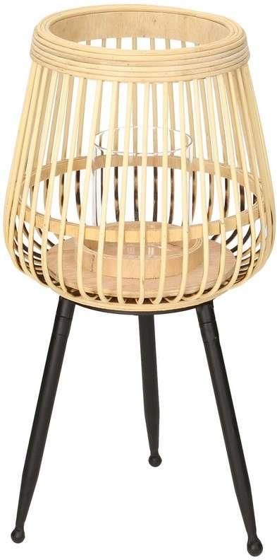 Bambusowy świecznik na trzech, metalowych nóżkach w kolorze czarnym. Świecznik bambusowy w naturalnym kolorze, osadzony na trzech nogach to wyjątkowa dekoracja. Idealnie sprawdzi się jako ozdoba wnętrza, jak również tarasu czy ogrodu, nadając przytulności podczas letnich wieczorów. Dla lepszego efektu świecznik bambusowy skompletuj z jego mniejszą wersją. Produkt posiada szklaną osłonkę na świecę. Wymiary: śr. 21 cm, wys. 42 cm. Materiał: drewno bambusowe/metal. Kolor: naturalny/czarny.