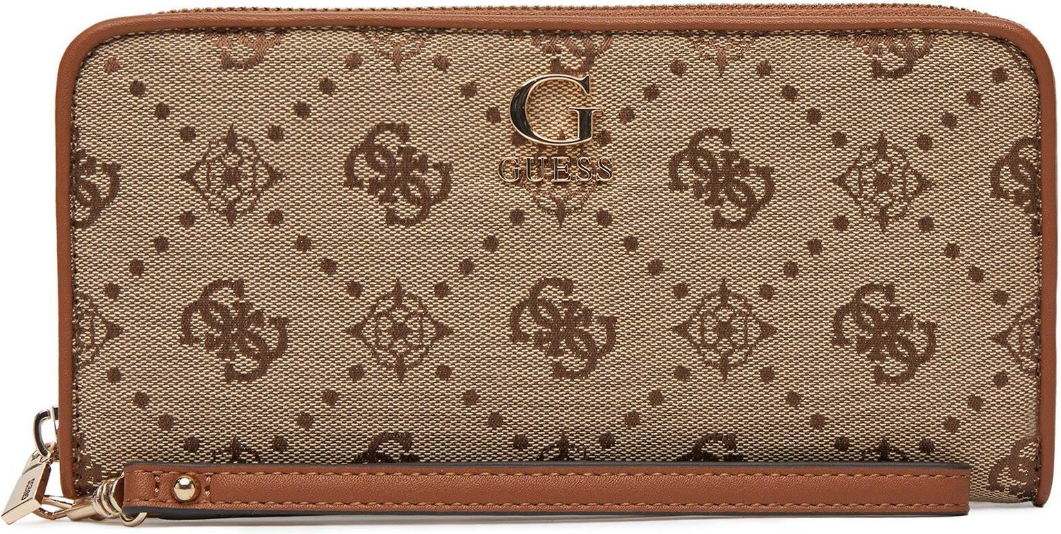 GUESS Beżowy damski portfel Neda Beżowy damski portfel materiałowy marki Guess. Zamykany na zamek, wyposażony w kieszeń na bilon, dwie przegrody, 12 miejsc na karty, dwie kieszenie wsuwane oraz dodatkową kieszeń zewnętrzną na zamek. Wszystkie produkty z oferty OUTFIT-butik są oryginalne i pochodzą …