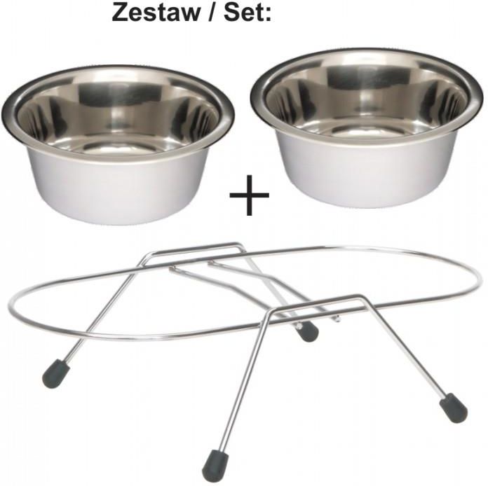 Dwie metalowe miski na stojaku 2x 1,8l Brwinów