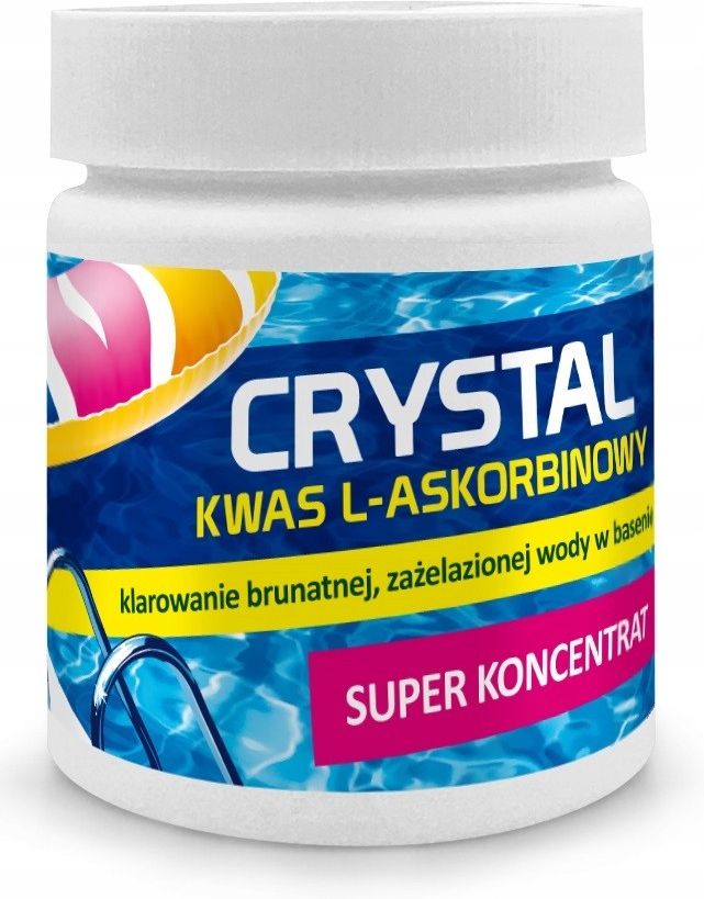 GAMIX CRYSTAL KWAS L-ASKORBINOWY SUPER KONCENTRAT 250G - KLAROWANIE BRUNATNEJ ZAŻELAZIONEJ WODY W BASENIE NAJWYŻSZEJ JAKOŚCI CHEMIA BASENOWA GAMIX CRYSTAL KWAS L-ASKORBINOWY250G Środek do klarowania zażelazionej, brunatnej wody w basenach kąpielowych. Preparat należy dozować w przypadku wystąpienia problemu z pojawieniem się brunatnego koloru wody. Stosuj gdy woda zaraz po nalaniu do basenu ma kolor brunatny lub gdy po zastosowaniu dezynfekcji chlorowej woda zmieni kolor na brunatny. Dodatkowo preparat obniża pH wody. SPOSÓB UŻYCIA Przy włączonej filtracji wsyp bezpośrednio do basenu 12 gram środka/m3 wody, odczekaj cykl filtracyjny (pojemność basenu dzielona przez wydajność pompy), w przypadku słabego efektu powtarzaj czynność do uzyskania krystalicznie czystej wody. Dozowanie środka uzależnione jest od zawartości związków żelaza w wodzie. Po uzyskaniu zadowalającego efektu należy wyregulować odczyn pH wody do wartości 7,0-7,6. Następnie należy sprawdzić zawartość chloru w wodzie, którego wartość musi być utrzymywana na poziomie minimum 0,3mg/l. • Zastosowanie środka daje pozytywne efekty w przypadku mocno zażelazionej wody, preparat nie działa biobójczo oraz nie oczyszcza wody z organicznych zanieczyszczeń. • Preparat z czasem zmienia kolor na brązowy. Nie wpływa to na jego właściwości. CECHY TOWARU waga - 250g postać - proszek - super koncentrat certyfikat: ISO 9001:2008, TUV , PZH producent - Gamix Produktów biobójczych należy używać z zachowaniem środków ostrożności. Przed każdym użyciem należy przeczytać etykietę i informacje dotyczące produktu.