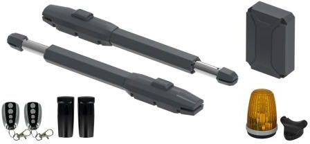 Zestaw GateOn S224 do bram dwuskrzydłowych o długości bramy 4.4m (skrzydło 2,2m) i ciężarze bramy do 200kg (skrzydło 100kg). W skład zestawu wchodzi: siłowniki S224 2szt. wbudowana centrala sterująca z radioodbiornikiem pilot 4-kanałowy 2szt. fotokomórki (nadajnik+odbiornik) lampa ostrzegawcza uchwyty montażowe do słupka i do bramy elementy montażowe klucze do rozblokowania awaryjnego instrukcja w języku polskim