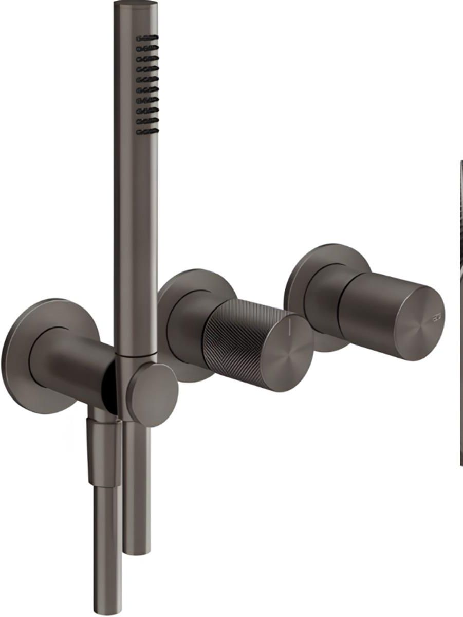 Gessi Habito Diamantato bateria podtynkowa prysznicowa ścienna dwudrożna z hakiem na słuchawkę prysznicową i prysznicem ręcznym Black Metal Br. PVD