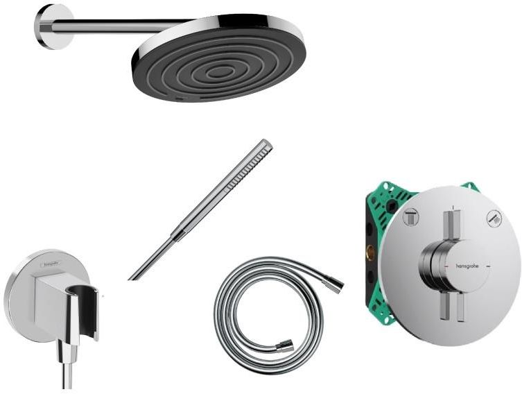 Hansgrohe kompletny zestaw podtynkowy z deszczownicą w wykończeniu chrom połysk Elementy składowe Hansgrohe DuoTurn S Bateria podtynkowa z mieszaczem do 2 odbiorników chrom połysk 75418000 Hansgrohe iBox universal 2 Zestaw podstawowy 01500180 Hansgrohe Pulsify S 260 Deszczownica 1jet EcoSmart chrom …