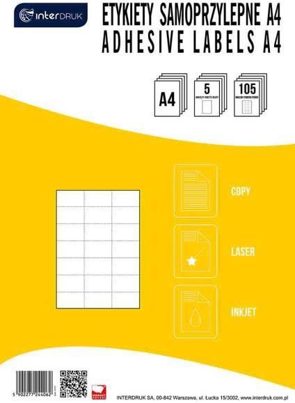 Interdruk Etykiety Samoprzylepne A4 5Arkuszy X 21Szt. Białe [Karty] Brwinów