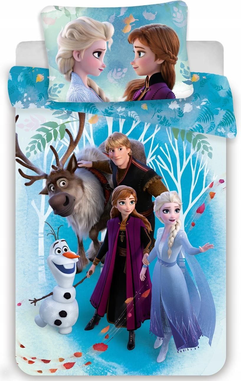Jerry Fabrics  Pościel z motywem z bajki Kraina Lodu II Frozen Pościel 140 x 200 cm Skład zestawu: 1x poszewka na kołdrę o wymiarach 140 x 200 cm 1x poszewka na poduszkę o wymiarach 70 x 90 cm Materiał: 100 % bawełna Rodzaj zapięcia: zamek błyskawiczny Certyfikat: Oeko-Tex Gramatura: 110 g/m2 …