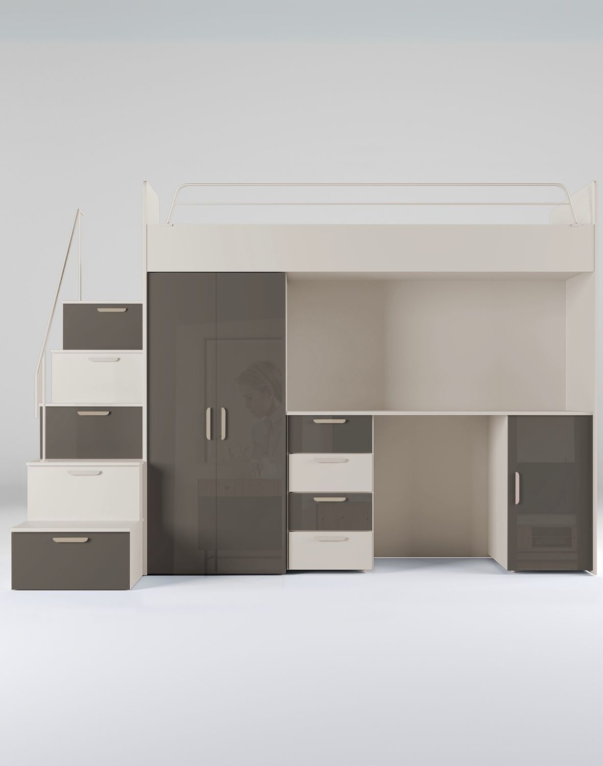Meblościanka Raj 4 to kompleksowy system meblowy typu "wszystko w jednym", stworzony z myślą o maksymalnym wykorzystaniu przestrzeni w pokoju dziecięcym lub młodzieżowym.Funkcjonalne rozwiązania, przemyślany układ i nowoczesna forma sprawiają, że jest to idealna propozycja do mniejszych wnętrz.System zawiera:- łóżko piętrowe (na górze) ze stelażem i materacem,- biurko z szufladami i szafką (w centralnej części),- pojemną szafę ubraniową,- praktyczne schody z szafkami w stopniachObciążenie górnego łóżka wynosi do 75 kg.Fronty zestawu są wykonane z płyty meblowej MDF na wysoki połysk.Korpus łóżka jest wykonany z odpornej na zarysowania płyty laminowanej w kolorze kaszmirowym o grubości 16 mm.Łóżko może być złożone w wersji ze schodkami z prawej lub z lewej strony (podczas montażu samemu decyduje się z której strony ma być wejście na łóżko).Szuflady biurka można zamontować po lewej lub prawej stronie.Stelaż łóżka jest wykonany z ramy ze sklejki bukowej dzięki czemu jest on bardzo wytrzymały. Stelaż posiada 21 listew sprężynujących.Uchwyty wykonane są z tworzywa PCV.To wszystko w jednym spójnym zestawie, który pozwala urządzić cały pokój w sposób funkcjonalny i estetyczny.Raj 4 dostępny jest w 4 modnych wariantach kolorystycznych, szafki mają połyskliwe wykończenie:- kaszmir + niebieski- kaszmir + zielony- kaszmir + beż- kaszmir + fiolet- kaszmir + szary- kaszmir + czarny- kaszmir + róż- kaszmir + białyKorpus w najmodniejszym kolorze tego sezonu - kaszmir harmonijnie łączy się z barwnymi frontami, nadając meblom świeżość i styl.Zestaw Raj 4 można montować na kilka sposobów w zależności od potrzeb:Model objęty jest 2 letnią gwarancją producenta.Produkt dostarczymy do Państwa BEZPŁATNIE pod wskazany adres na terenie całego kraju.Mebel wymaga samodzielnego montażu, zgodnie z załączoną instrukcją.Co WAŻNE: zgodnie z prawem i naszymregulaminemmają Państwo pełne prawo do zwrotu nieużywanych towarów, jeśli nie spełnią one Państwa oczekiwań. Wymiary: