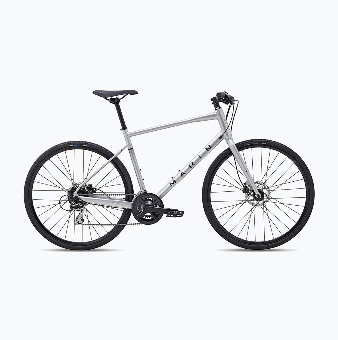 Marin FAIRFAX 2 28" 2025 srebrno czarny Dostępne rozmiary ram: L SPECYFIKACJA FRAME Series 2 Fitness, 6061 Aluminum, 700C Wheels, Internal Cable Routing, Disc Specific Forged QR Dropouts, Rear Kickstand Mount, Fender and Rack Mounts FORK 6061 Aluminum, Straight-Blade, Disc Mount, QR Dropouts, Fender and Rack Eyelets RIMS Marin Aluminum Double Wall, Disc Specific HUB, REAR Forged Aluminum Alloy, Disc, 32H HUB, FRONT Forged Aluminum Alloy, Disc, 32H SPOKE, NIPPLES 14g Black Stainless Steel TIRES Vee Tire Co., Zilent, 700Cx35mm, Puncture Protection, Wire Bead DERAILLEUR, REAR Shimano Acera, 8-Speed DERAILLEUR, FRONT Shimano TY710 SHIFT LEVER Shimano Altus 2x8 CRANKSET Forged Alloy Crank, 46/30T, Ring Guard BOTTOM BRACKET Sealed Cartridge Bearings, Square Taper CHAIN KMC Z8 CASSETTE SunRace 8-Speed, 11-34T BRAKE, FRONT Clark's Clout Hydraulic Disc, 160mm Rotor BRAKE, REAR Clark's Clout Hydraulic Disc, 160mm Rotor BRAKE LEVERS Clark's Clout Hydraulic HANDLEBAR Marin Alloy Flat, 31.8mm STEM Marin 3D Forged Alloy GRIPS Marin Ergonomic Locking HEADSET FSA, No.8B SEATPOST Marin Alloy, 27.2mm SADDLE Marin Fitness Plush PEDALS Marin Oso OEM Nylon Platform