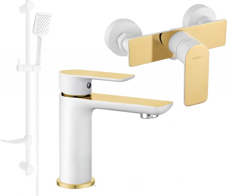 Mexen Alfa Df62 Biały/Złoty (745704DF6225) Zestaw prysznicowy Mexen Alfa Df62 w eleganckim połączeniu białego i złotego koloru to idealny wybór dla osób, które pragną połączyć estetykę z funkcjonalnością w swojej łazience. Dzięki nowoczesnemu designowi oraz solidnemu wykonaniu, bateria ta nie tylko podnosi walory wizualne wnętrza, ale również znacząco wpływa na komfort codziennych czynności, takich jak mycie rąk czy branie prysznica. Rozmiary i typ montażu Zestaw prysznicowy Mexen Alfa Df62 został zaprojektowany do montażu ściennego, co pozwala na efektywne wykorzystanie przestrzeni w łazienkach o mniejszych metrażach. Wysokość zestawu wynosząca 800 mm oraz standardowa szerokość drążka 22 mm sprawiają, że doskonale wpisuje się w większość standardowych aranżacji. Dodatkowo, odległość od ściany wynosząca 105 mm zapewnia odpowiednią przestrzeń do korzystania z prysznica, a zasięg wylewki wynoszący 170 mm sprawia, że bateria idealnie współpracuje z różnymi kabinami prysznicowymi. Materiał wykonania i wykończenie Bateria Mexen Alfa Df62 to produkt wykonany z wysokiej jakości materiałów, takich jak mosiądz oraz stal nierdzewna, co gwarantuje jej trwałość i odporność na korozję. Eleganckie wykończenie w kolorze białym i złotym nadaje jej wyjątkowego charakteru, sprawiając, że doskonale komponuje się z różnorodnymi aranżacjami wnętrz. Gładka powierzchnia baterii nie tylko wygląda estetycznie, ale również ułatwia utrzymanie jej w czystości, co jest istotne w codziennym użytkowaniu. Regulacja temperatury i strumienia Bateria Mexen Alfa Df62 wyposażona jest w ceramiczną głowicę, która zapewnia precyzyjną regulację temperatury oraz strumienia wody. Dzięki temu możesz w łatwy sposób dostosować intensywność oraz ciepłotę wody do własnych potrzeb, co znacznie zwiększa komfort podczas kąpieli. Dodatkowo, perlator wbudowany w zestaw pozwala na oszczędność wody, co jest istotne w kontekście dbałości o środowisko oraz zmniejszenia rachunków za wodę. Rodzaj baterii Produkt ten jest zestawem prysznicowym, który został stworzony do użytku domowego. Doskonale spełnia wymagania zarówno dla standardowych, jak i nowoczesnych łazienek, a także współgra z innymi elementami armatury. Zalety produktu Wybór zestawu prysznicowego Mexen Alfa Df62 to wiele korzyści, które warto podkreślić: nowoczesny design – eleganckie połączenie kolorów białego i złotego sprawia, że bateria staje się ozdobą łazienki, wysoka jakość wykonania – zastosowane materiały gwarantują trwałość i odporność na uszkodzenia, łatwość w obsłudze – jednouchwytowy system pozwala na wygodną regulację strumienia i temperatury wody, oszczędność wody – perlator przyczynia się do zmniejszenia zużycia wody, co jest korzystne zarówno dla środowiska, jak i dla portfela, prosty montaż – regulowane uchwyty montażowe oraz standardowe wymiary ułatwiają instalację. Funkcje dodatkowe i typ uchwytu Zestaw prysznicowy Mexen Alfa Df62 zawiera szereg funkcji, które zwiększają jego użyteczność. Poniżej znajduje się lista kluczowych elementów: regulowane uchwyty montażowe – umożliwiają dostosowanie do różnych wysokości, przesuwny uchwyt na słuchawkę – zapewnia wygodę korzystania z prysznica, mydelniczka – praktyczny element ułatwiający utrzymanie porządku w łazience, trzy funkcje słuchawki prysznicowej – umożliwiają różne ustawienia strumienia wody, elastyczny wąż o długości 150 cm – zapewnia swobodę ruchów podczas kąpieli, obrotowe końcówki – zapobiegają skręcaniu węża, co wpływa na komfort użytkowania, gładka powierzchnia – ułatwia utrzymanie czystości. Typ jednouchwytowy pozwala na łatwą i szybką regulację wody jedną ręką, co jest niezwykle komfortowe, zwłaszcza w sytuacjach, gdy druga ręka jest zajęta.