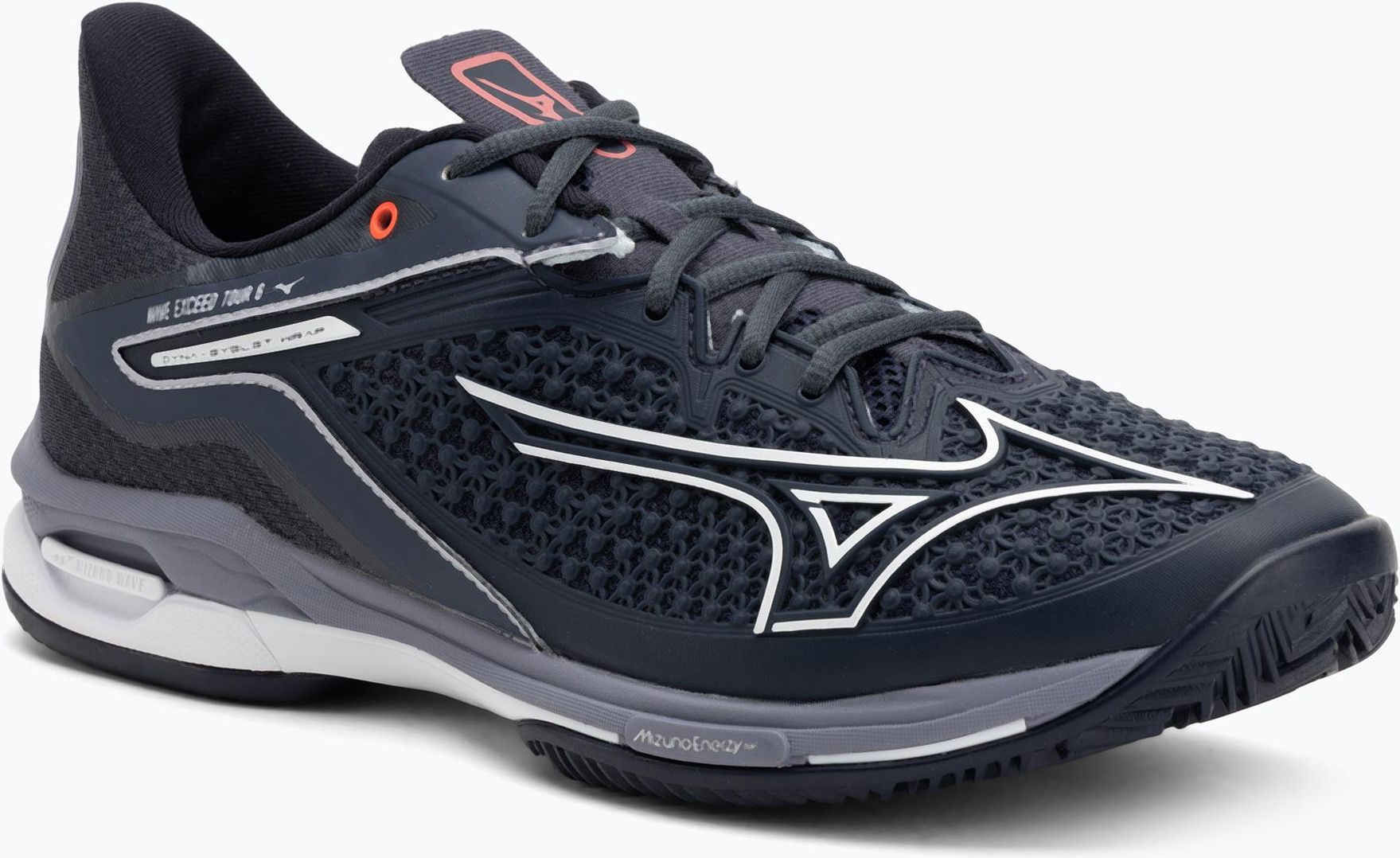 Buty tenisowe Mizuno Wave Exceed Tour 6 Clay Mizuno Wave Exceed Tour 6 CC to nowoczesne buty tenisowe dla mężczyzn, stworzone z myślą o wymagających zawodnikach poszukujących perfekcyjnej amortyzacji, stabilizacji i wytrzymałości, bez kompromisów w kwestii lekkości i szybkości ruchu. Buty wykonane zostały z trwałych, wysokiej jakości materiałów, a cholewka z siateczkowego tworzywa sztucznego zapewnia odpowiednią wentylację i doskonałe trzymanie stopy. Dzięki dużej ilości otworków struktura ta umożliwia efektywne odprowadzanie ciepła podczas gry. Zaawansowana technologicznie wkładka kompozytowa Mizuno Wave zapewnia amortyzację na całej długości buta, chroniąc stopę podczas intensywnych wymian i zmian kierunku. Podeszwa środkowa z pianki Mizuno Enerzy odpowiada za świetny zwrot energii oraz miękkie lądowanie, co przekłada się na dynamiczne odbicia i komfort podczas całego meczu. Buty przeznaczone są do gry na kortach ceglanych (clay) dzięki specjalnemu bieżnikowi, który gwarantuje przyczepność i kontrolę w ślizgach. Zastosowane technologie: Mizuno Wave – doskonała amortyzacja i ochrona stopy Mizuno Enerzy – efektywny zwrot energii i lekkość D-Flex Groove – lepsza zwrotność i dynamiczne zmiany kierunku POWNCE – niska waga i komfort ruchu U4ICX – miękka, elastyczna podeszwa środkowa