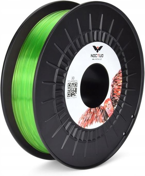 Filament Noctuo PET-G 1.75mm Lime Limonkowy 250g Filament NOCTUO PET-G 0,25kg to materiał o szerokim spektrum zastosowań, wyróżnia się łatwością w druku i niezwykle atrakcyjnym, wyrazistym kolorem. Dzięki niemu osiągniesz świetne rezultaty przy wydruku swoich trójwymiarowych projektów. Filament przeznaczony jest dla początkujących drukarzy ale również co bardziej zaawansowani znajdą w nim przydatny materiał przy realizacji skomplikowanych modeli. Specyfikacja techniczna Średnica: 1,75 mm Tolerancja średnicy: /- 0,02 mm Tolerancja owalu: 0,01 mm Waga netto: 0,25 kg Temperatura druku: 220 - 245°C Temperatura stołu: zalecana 60°C - 70°C