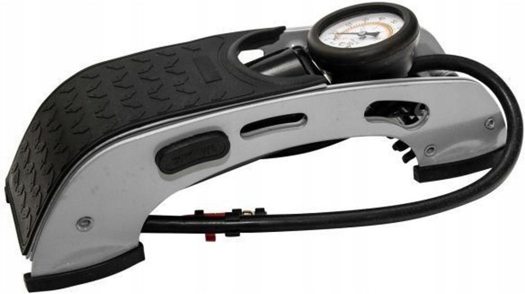 Pompka samochodowa nożna Omega Pompka samochodowa Omega to praktyczny produkt, który umożliwi Ci samodzielne uzupełnienie powietrza w kole samochodowym. Dzięki temu zapewnisz sobie możliwość dalszej bezpiecznej jazdy, bez konieczności udawania się na stację benzynową lub do wulkanizatora. Produkt jest wyposażony w manometr, który pozwoli Ci kontrolować ciśnienie powietrza w kole, a co za tym idzie wykonać to zadanie precyzyjnie. Dodatkowo pompka jest wyposażona w komplet wymiennych końcówek, więc zastosujesz ją niezależnie od tego, jaki rodzaj kół jest zamontowany w Twoim pojeździe. Co więcej, możesz ją użyć również do uzupełnienia powietrza w kołach rowerowych. Kolejnym atutem pompki są jej kompaktowe rozmiary, dlatego możesz ją z łatwością zmieścić w bagażniku samochodowym, aby zawsze była pod ręką. Długość opakowania 14 cm Wysokość opakowania 37 cm Szerokość opakowania 12 cm Waga brutto 1.25 kg Obszary zastosowania pompowanie kół w samochodzie, rowerze Gwarancja obowiązuje rękojmia EAN 5905620015326 Informacje dodatkowe pompka 1-tłokowa z manometrem i kompletem końcówek, maksymalne ciśnienie 7 bar Nr referencyjny 15743