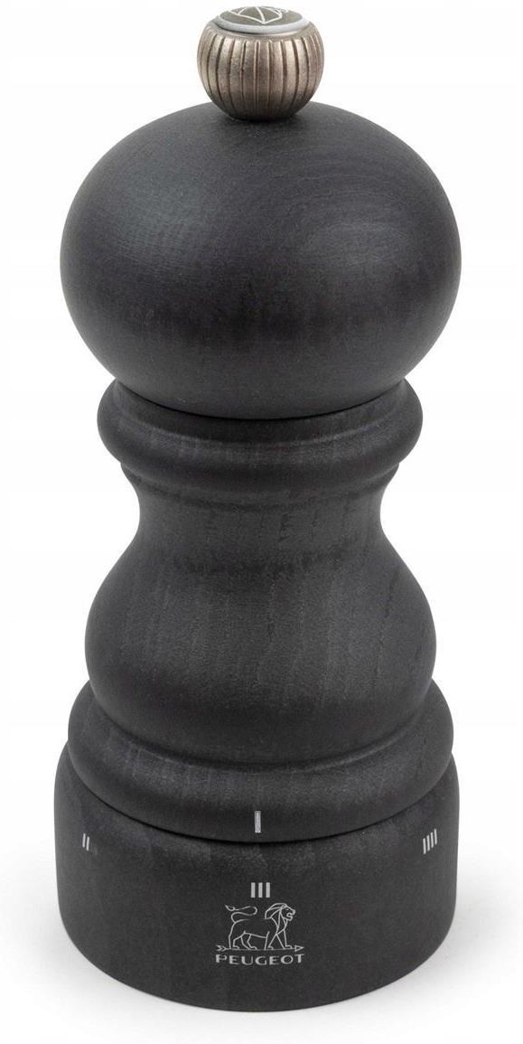 PEUGEOT to jedna z najbardziej rozpoznawalnych marek pochodzących z Francji produkty tej marki stanowią klasyczną ozdobę eleganckich stołów i są nieodzownym elementem warsztatu renomowanych kucharzy. ► PARIS GRAPHITE Młynek do soli 12 cm Oryginalny młynek o ikonicznym designie, który został odświeżony nowoczesnym wykończeniem w antracytowo-szarym odcieniu. Ten wyjątkowy młynek zachwyca subtelnymi, metalicznymi refleksami, które harmonijnie współgrają z naturalnymi słoje drewna bukowego. Jest zarówno estetyczny, jak i funkcjonalny, stanowiąc nieoceniony dodatek do Twojej kuchni.Antracytowa wersja młynka PARIS to ikona wzornictwa od renomowanej firmy PEUGEOT, rozpoznawalna na całym świecie. Delikatnie metaliczny odcień symbolizuje doskonałą harmonię drewna i stali, podkreślając piękno słojów drewna. Młynek został wyprodukowany z drewna pochodzącego z lasów z certyfikatem PEFC™, a jego powierzchnia jest pokryta farbą i lakierem na bazie wody, spełniając wszystkie normy dotyczące ekologii i zrównoważonego rozwoju.Młynek jest wyprodukowany we Francji i wyposażony w mechanizm mielący z dożywotnią gwarancją u'Select, który umożliwia precyzyjne dostosowanie stopnia mielenia. To ręczny młynek do soli, wyposażony w system regulacji stopnia mielenia u'Select. Drobno zmielona sól wzmocni smak Twoich ulubionych dań, podczas gdy grubo zmielona nada intensywność smakowi steków i innych mięs. Dzięki systemowi regulacji u'Select i dostępnym 6 ustawieniom mielenia (1 dla najdrobniejszego, 6 dla najgrubszego), łatwo dostosujesz młynek do swoich potrzeb i preferencji smakowych. ► Cechy produktu: - To ręczny młynek do mielenia- Wykorzystuje drewno pozyskiwane z francuskich lasów, które są certyfikowane przez PEFC- Posiada system regulacji mielenia u'Select z sześcioma różnymi ustawieniami mielenia- Wykończony farbą i lakierem na bazie wody, co sprawia, że jest przyjazny dla zdrowia i środowiska naturalnego- Zawiera mechanizm mielący objęty dożywotnią gwarancją- Drewno zostało starannie wytoczone na gładką powierzchnię- Przeznaczony jest do mielenia suchej soli, szczególnie soli kamiennej o ziarnistości do 4 mm- W zestawie znajduje się sól- Ważne jest, aby nie używać go do mielenia mokrej soli morskiej, nawet jeśli ta jest wcześniej dokładnie wysuszona.  ► O marce Peugeot: PEUGEOT to jedna z najbardziej rozpoznawalnych marek pochodzących z Francji, silnie zakorzeniona w bogatej historii kraju. Młynki marki Peugeot stanowią klasyczną ozdobę eleganckich stołów i są nieodzownym elementem warsztatu renomowanych kucharzy.Historia tej wyjątkowej marki rozpoczęła się w XIX wieku. Ostrza, młynki do kawy, rowery, samochody, młynki stołowe... Dzięki inżynieryjnej pomysłowości Peugeot zawsze stał na czele innowacji!Peugeot jestniekwestionowanym liderem w produkcji młynków do przypraw i kawy. Ciągle doskonali ich konstrukcję, tworząc narzędzia do kreowania smaków, dostarczając przyjemności i nowych doznań dla wyrafinowanego podniebienia koneserów.