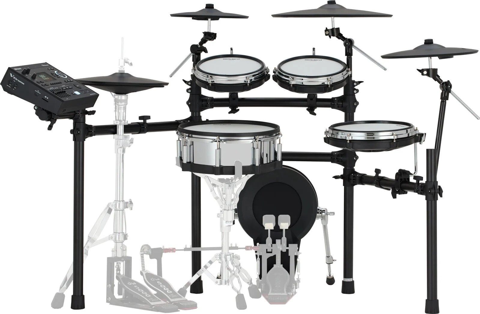 To jest automatyczne tłumaczenie wygenerowane przez software:Zaprojektowana dla poważnych perkusistów, seria V-Drums 5 zapewnia profesjonalną wydajność dla każdej muzycznej potrzeby. Moduł V51 trafia w najlepszy punkt w uniwersum V-Drums nowej generacji, umieszczając flagowy silnik brzmieniowy z V71 na wszechstronnej platformie sprzętowej z pełną obsługą padów cyfrowych, solidnymi wejściami/wyjściami i płynną integracją z oprogramowaniem DW Soundworks do perkusji komputerowej. A dzięki wbudowanej łączności bezprzewodowej łatwo jest rozbudować swoją konfigurację dzięki stale rosnącej gamie rozszerzeń dźwiękowych i innych treści V-Drums w Roland Cloud. Rozszerzona gra, doskonała kontrolaŚredniej klasy TD516 oferuje najwyższej jakości dźwięk i elastyczność, jednocześnie zwiększając możliwości dzięki większej powierzchni, ulepszonej grywalności i pełnej integracji cyfrowego pada. Niezależnie od tego, czy śledzisz szczegółowe występy w studiu, czy wymagasz więcej niuansów od konfiguracji na żywo, TD516 zapewnia ultra-dynamiczną kontrolę, głęboką łączność i realizm, którego gracze oczekują od najwyższej klasy V-Drums. Dźwięk klasy premiumModuł V51 jest częścią ujednoliconego ekosystemu z V71 i V31, zapewniając po raz pierwszy pełną kompatybilność między modułami V-Drums. Perkusiści mogą grać z tą samą podstawową biblioteką brzmień stworzoną dla serii V-Drums 7 i inspirować się zawartością Roland Cloud dla V-Drums, w tym wielowarstwowymi rozszerzeniami instrumentów V-Drums opartymi na zestawach perkusyjnych DW klasy premium. Nowe brzmienia na żądaniePodobnie jak V71, zestaw brzmień w module V51 można dowolnie zmieniać, aby zachować świeżość muzyki. Korzystając z aplikacji Roland Cloud Connect na urządzeniu mobilnym, perkusiści mogą uzyskać dostęp do rosnącej gamy tytułów V-Drums Instrument Expansion za pośrednictwem sieci bezprzewodowej, pobrać je bezpośrednio do modułu i natychmiast rozpocząć bębnienie.