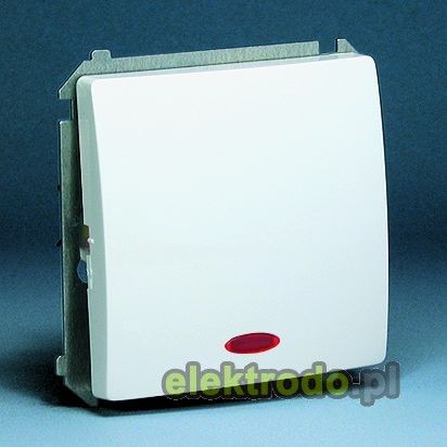 Łącznik pojedynczy z podświetleniem, wyposażony w klawisz pojedynczy, posiada możliwość łączenia w obrębie pojedynczego obwodu, przez co działa na zasadzie przełącznika (sprężyna nie odbija z powrotem po puszczeniu przycisku). Napięcie znamionowe: 250V Prąd znamionowy: 10 AX Szybkozłącze