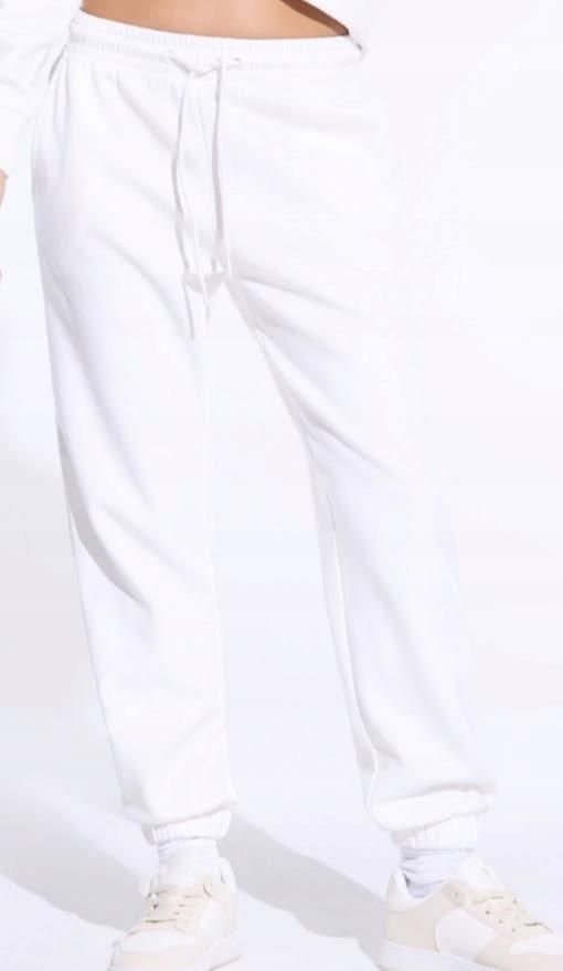 SINSAY Dresowe damskie spodnie z ściągaczem i kieszeniami XL kremowe Brwinów