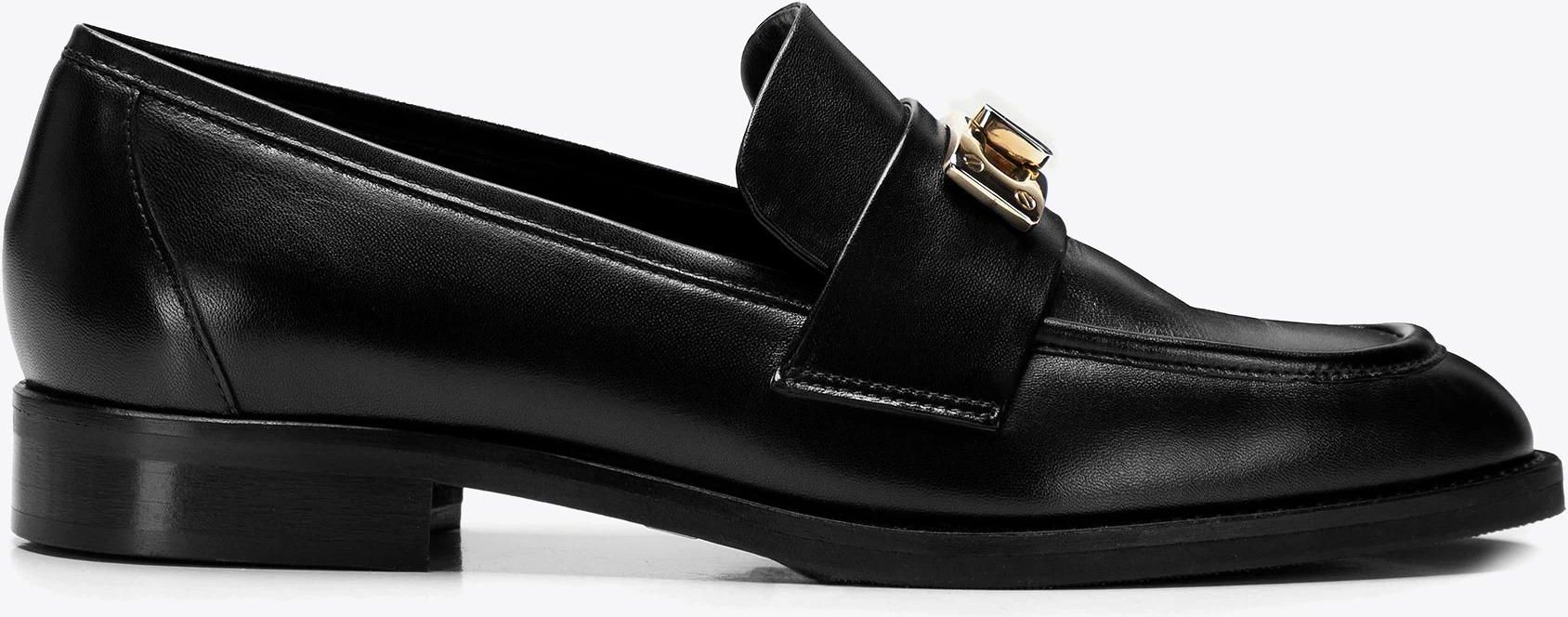 Skórzane mokasyny z biżuteryjną klamrą czarne Brwinów