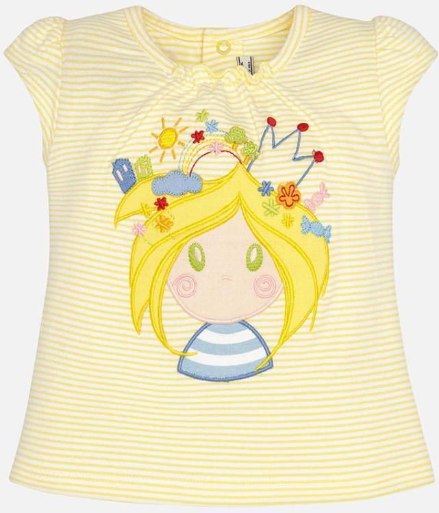 Fajna i radosna koszulka z krótkim rękawem, to wygodna propozycja na lato dla dziewczynki. Wykonana z elastycznej dzianiny w paski. Dekolt marszczony na dolnym odcinku, co dodaje koszulce jeszcze więcej uroku, na pleckach zapięcie na dwie napy. Z przodu koszulki piękna kolorowa aplikacja. KOLEKCJA WIOSNA-LATO - wyszywana aplikacja - z tyłu zapięcie na dwie napy skład : 92% bawełna, 8% elastan
