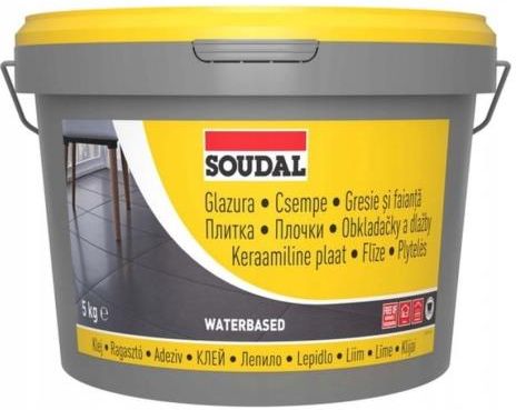Klej super do glazury i terakoty Soudal 24A 15 kg Wodoodporny klej o wysokiej sile spojenia do klejenia ściennych i podłogowych płytek ceramicznych wewnątrz pomieszczeń WŁAŚCIWOŚCI: Klej pozostaje elastyczny w szerokim zakresie temperatur Może być stosowany z ogrzewaniem podłogowym Nie zawiera rozpuszczalników Bezwonny Nie emituje szkodliwych związków lotnych Po utwardzeniu niepalny Doskonała przyczepność do tynku, betonu, cegły, karton-gipsu, kamienia, drewna i płyt drewnopochodnych oraz ceramiki i szkła Nie stosować do wyrównywania podłoża ZASTOSOWANIE: Klejenie ściennych i podłogowych płytek ceramicznych do typowych podłoży mineralnych Klejenie glazury na ekranach maskujących z płyt drewnopochodnych - sklejce, płycie wiórowej, MDF itp. Klejenie glazury na starych okładzinach metodą "płytka na płytkę"