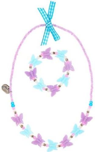 Souza! Zestaw naszyjnik i bransoletka Esmay motyle Naszyjnik i bransoletka Esmay holenderskiej marki Souza! to zestaw biżuterii z drobnych koralików i elementów w kształcie motyli w kolorach fioletowym i turkusowym z kilkoma koralikami w bieli, złocie i różu. Bransoletka ma 14 cm obwodu, a …