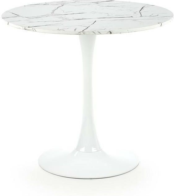 Elegancki stół w stylu glamour Stół Verden to elegancki i nowoczesny mebel, który doda stylu i klasy do każdego wnętrza. Został wykonany z materiałów wysokiej jakości, takich jak MDF okleinowany i stal malowana proszkowo, co zapewnia trwałość i wytrzymałość mebla na wiele lat. Stół Verden ma idealne wymiary, które pozwalają na wygodne siedzenie trzech osób, co czyni go idealnym rozwiązaniem dla małych przestrzeni, takich jak kuchnie lub jadalnie. Blat stołu ma kształt okrągły o średnicy 80 cm, a wysokość wynosi 73 cm. Blat stołu Verden został wykonany z MDF okleinowanego, co zapewnia trwałość i łatwość w utrzymaniu czystości. Kolor biały marmur nadaje meblowi elegancki i luksusowy wygląd. Noga stołu jest wykonana z białej stali malowanej proszkowo, co dodaje mu nowoczesnego wyglądu. Stół Verden jest łatwy w montażu i posiada tylko jedną nogę, co pozwala na swobodne ustawienie krzeseł wokół stołu. Mebel jest bardzo stabilny i wytrzymały, co pozwala na bezpieczne użytkowanie przez wiele lat. Stół Verden to idealny wybór dla osób, które cenią sobie elegancki design, trwałość i funkcjonalność. Dzięki swoim wymiarom i wyglądowi, będzie idealnie pasował do każdego wnętrza, dodając mu stylu i klasy. Co musisz wiedzieć przed zakupem? Elegancki i nowoczesny design stołu Verden dodaje stylu i klasy do każdego wnętrza Materiały wysokiej jakości, takie jak MDF okleinowany i stal malowana proszkowo, zapewniają trwałość i wytrzymałość mebla Stołek Verden jest odpowiedni dla trzech osób, co czyni go idealnym rozwiązaniem dla małych przestrzeni, takich jak kuchnie lub jadalnie