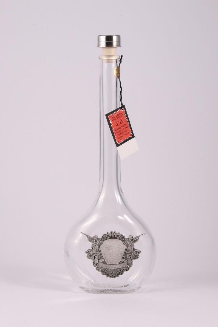 Ładna, o oryginalnym design szklana karafka 500ml ze zdobieniami(tarcza z myśliwymi, nadająca się na okazjonalny grawer) na szkle wykonanymi cyną, firmowana marką Freitas & Dores Unipessoal Freitas & Dores Unipessoal, Lda jest portugalską firmą założoną w 1983 roku i specjalizującą się w produkcji artykułów do dekoracji wnętrz z dodatkiem i zdobieniami z cyny, zlokalizowaną w Maia, znajdującym się nieopodal Porto. Wszystkie produkty wykonane są w 95% z czystej cyny i w 5% z miedzi i antymonu oraz zgodnie z regułą europejską - EN 611. Produkty Freitas & Dores cechuje ekskluzywność i kreatywność, a każdy przedmiot jest efektem skrupulatnej pracy i całkowitego poświęcenia 20 osób/rzemieślników firmy specjalizujących się w tworzeniu oraz dekorowaniu przedmiotów cyną, ale przy pomocy znanych i cenionych portugalskich projektantów.