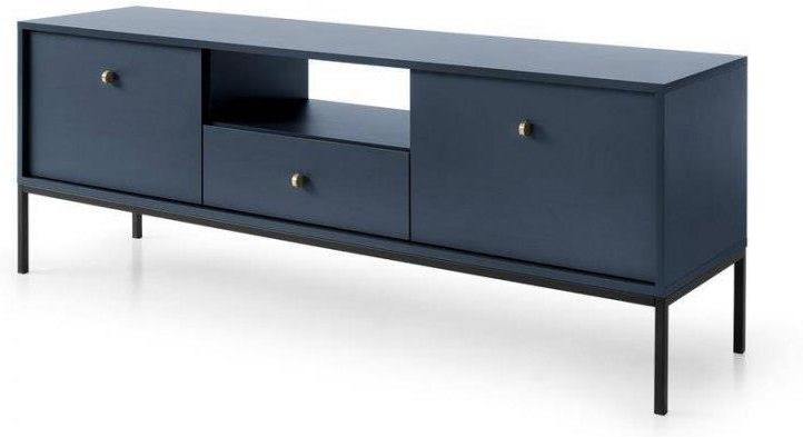 Szafka RTV Mono MRTV154 Granat Nowoczesna szafka RTV na metalowych nogach, w stylu industrialnym, w eleganckim, granatowym kolorze. ✅ Najważniejsze cechy: Materiały: Płyta laminowana 16 mm, nogi i uchwyty metalowe Kolory: Granatowy Style: Industrialny Producent: PIASKI Numer katalogowy: MRTV154G Za …