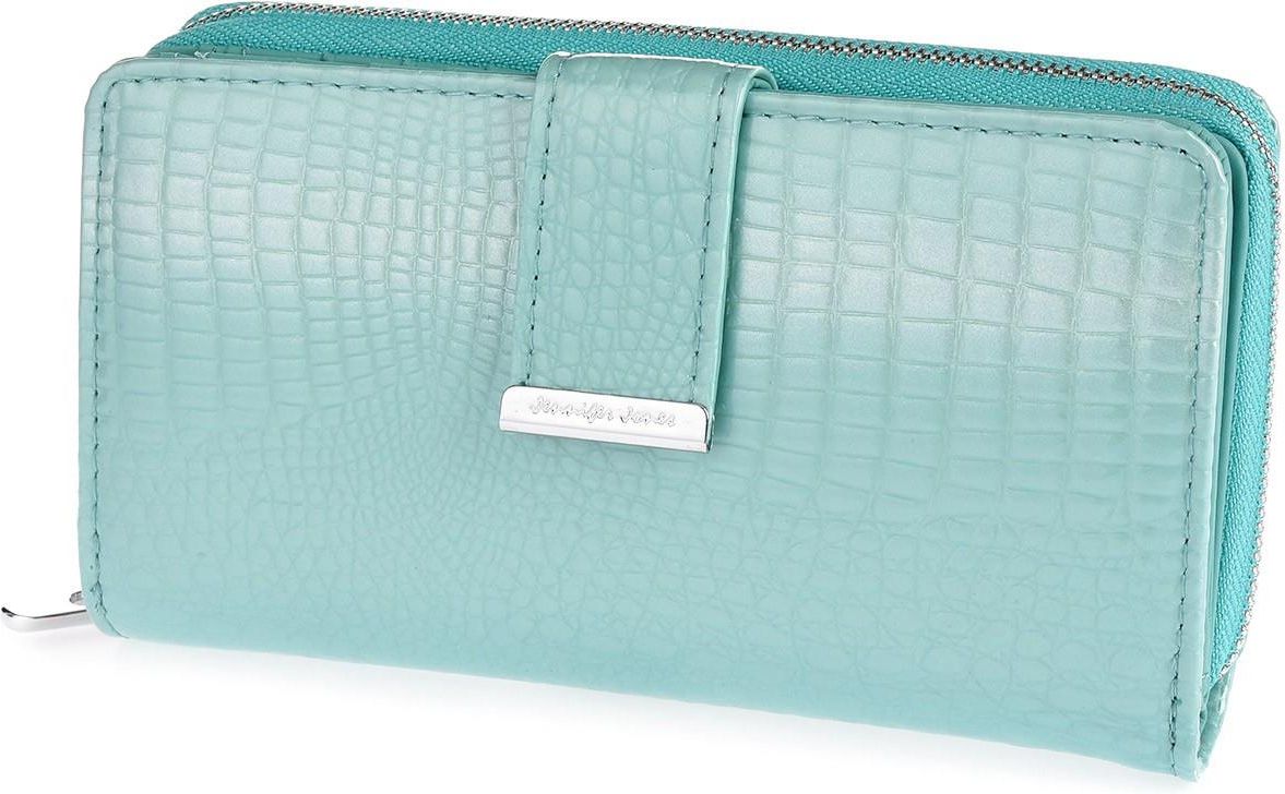 Turkusowy skórzany portfel damski lakierowany duży poziomy w piórka elegancki Jennifer Jones E72 Brwinów