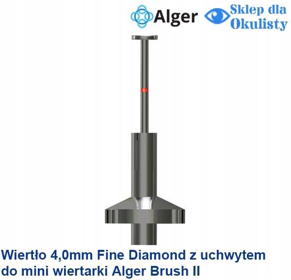 Wiertło 4,0mm z łącznikiem do mini wiertarki okulistycznej ALGERBRUSH II AlgerBrush II to mini wiertarka / szczoteczka do rogówki najczęściej używana przez okulistów, lekarzy pogotowia ratunkowego i okulistów weterynaryjnych. Wygodnie zasilana baterią AA, AlgerBrush II posiada silnik o niskim momencie obrotowym, który zapewnia powolne obroty. Frez służy jako szczoteczka do „szczotkowania” obwódki rdzawej z rogówki lub twardówki, pozostawiając gładką powierzchnię, która goi się szybciej niż przy użyciu innych instrumentów. Stosowana jest również przy leczeniu uszkodzeń nabłonka rogówki (SCCEDs) u zwierząt. AlgerBrush II – precyzyjne narzędzie do usuwania obwódki rdzawej oraz ciał obcych z rogówki lub twardówki oka, polecane przez specjalistów na całym świecie!