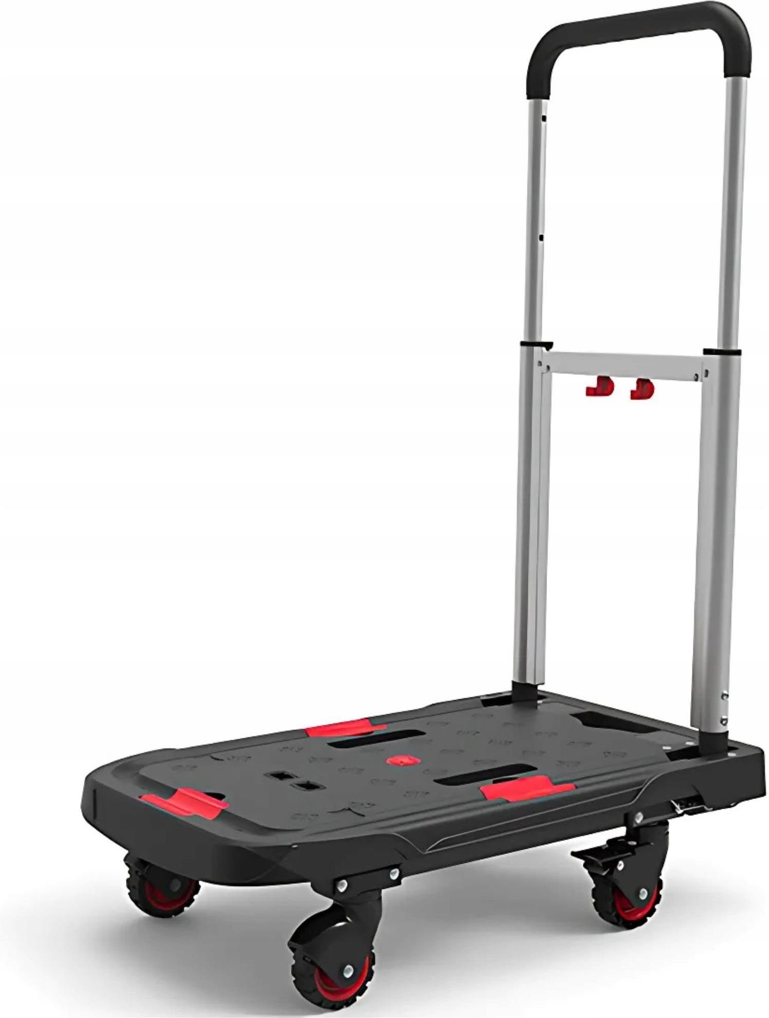 ViO HP-90AP, Wózek platformowy z uchwytem do przemieszczania ładunków, 90 kg ViO HP-90AP to wielofunkcyjny wózek platformowy z uchwytem przeznaczony do wygodnego i bezpiecznego transportu różnych ładunków o wadze do 90 kg. Kompaktowy, wytrzymały i ergonomiczny, jest idealny zarówno do użytku domowego, jak i profesjonalnego. Dzięki połączeniu lekkiego aluminium, wytrzymałej stali i odpornego tworzywa sztucznego, model ten zapewnia niezawodne wsparcie nawet przy częstym użytkowaniu. Solidna konstrukcja i trwałe materiały Podstawa wózka wykonana jest z aluminium, żelaza, PP i TPR, dzięki czemu jest nie tylko lekka (tylko 5,2 kg), ale także odporna na zużycie. Platforma wytrzymuje obciążenie do 90 kg i z łatwością radzi sobie z przenoszeniem pudeł, mebli i innych ciężkich przedmiotów. Wózek jest idealny do biura, sklepu, magazynu i użytku domowego. Składana platforma i uniwersalne kółka Wózek jest kompaktowy po złożeniu - ma tylko 8 cm wysokości - dzięki czemu można go łatwo przechowywać w szafie, spiżarni lub bagażniku samochodu. Cztery obrotowe kółka wykonane z gumy termoplastycznej zapewniają płynne i ciche przemieszczanie nawet na nierównych powierzchniach. Zapewnia to wysoki poziom mobilności i zwrotności przy minimalnym wysiłku. Wygodny i łatwy w użyciu Regulowany uchwyt z kilkoma poziomami wysokości umożliwia dostosowanie wózka do wzrostu użytkownika i charakterystyki ładunku. Niezawodna blokada zapewnia stabilność uchwytu pod obciążeniem. Stylowy design z czerwonymi wstawkami sprawia, że wózek ViO HTP-90FS jest nie tylko funkcjonalny, ale także atrakcyjny wizualnie. Zalety ViO HP-90AP Solidna konstrukcja: aluminium, żelazo, PP, TPR; Maksymalne obciążenie - 90 kg; Lekki - tylko 5,2 kg; Składany do wysokości 8 cm dla łatwego przechowywania; Cztery gumowe kółka do manewrowania; Regulowany uchwyt dla maksymalnego komfortu; Odpowiedni do domu, pracy i transportu. ViO HP-90AP to niezawodne rozwiązanie dla tych, którzy cenią sobie trwałość, mobilność i kompaktowość w jednym urządzeniu. Niezawodny asystent w każdej sytuacji.