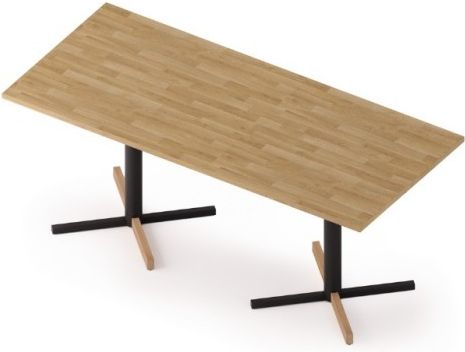 TABLES CROSS Uniwersalne stoły Kolekcja industrialnych stołów na charakterystycznej metalowej nodze osadzonej na krzyżaku, który może być częściowo wykonany z litego drewna. Blaty mają kształt koła, półokręgu, kwadratu lub prostokąta i mogą zostać wykonane z klejonki dębowej, płyty laminowanej lub …