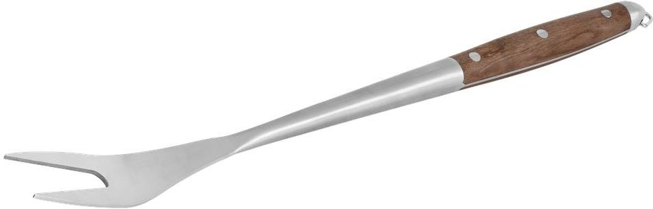 Widelec do grilla ze stali nierdzewnej z podwójnymi szpikulcami. Ma wygodny drewniany uchwyt, który zapewnia pewny chwyt.