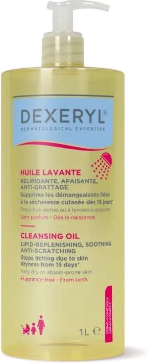 Dexeryl olejek do mycia, 1000 ml to nowoczesny emolient do mycia twarzy i ciała, stworzony z myślą o delikatnym oczyszczaniu, ochronie i intensywnym odżywieniu skóry bardzo suchej i skłonnej do atopii. Olejek natłuszczający do kąpieli dla niemowląt, dzieci i dorosłych dostarcza skórze niezbędnych lipidów — unikalna formuła zawiera kwas glicerynowy i glicerol, które działają łagodząco i nawilżająco, wspierając fizjologiczną barierę ochronną skóry. Olejek do mycia skóry suchej i atopowej Dexeryl stosowany regularnie przynosi efekt hamowania uciążliwego uczucia swędzenia skóry związanego z jej suchością. Produkt niepodrażniający oczu i niezawierający mydła, idealny jako codzienny olejek myjący na swędzenie skóry, zapewniający komfort i miękkość. Idealny dla całej rodziny.
