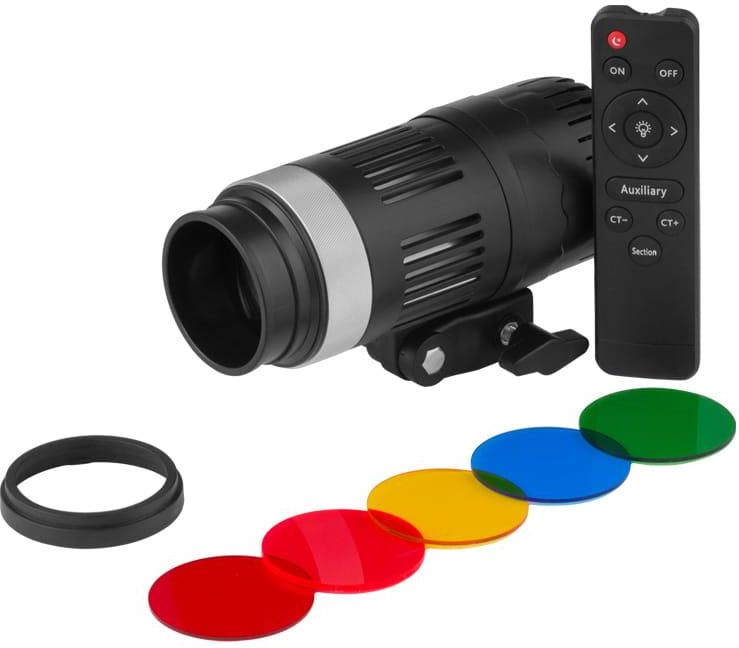 YM-80 to lampa LED przeznaczona do filmowania lub zdjęć ze światłem ciągłym w domowym zaciszu i małym studio, która idealnie spełni funkcje funkcję spotową, doświetlającą oraz do fotografii produktowej małych/średnich przedmiotów. Lampą możemy sterować przy pomocy pokrętła z tyłu obudowy oraz dołączonego w zestawie pilota. Regulacja mocy w zakresie o 1-100% odbywa się skokowo co 10%. Możemy również regulować temperaturę światła w zakresie 3200K - 6500K oraz skupienie wiązki światła przy pomocy metalowego pierścienia na obudowie. Lampa posiada równiez kilka podstawowych efektów świetlnych przydatnych podczas filmowania. W zestawie z lampą znajduje się 5 kolorowych filtrów, przewód zasilający, pilot do sterowania lampą oraz przeznaczone do niego baterie. Cechy: Montaż na standardowym statywie oświetleniowym. Regulacja snopa światła przy pomocy pierścienia na obudowie. Przegub pozwala regulować kąt pochylenia lampy w zakresie +/- 90°. Panel kontrolny lampy informuje o bieżących ustawieniach. Zasilanie sieciowe (kabel) W skład zestawu wchodzą: lampa YM-80 5 filtrów barwnyc: czerwony, pomarańczowy, niebieski, żółty i zielony. przewód zasilający pilot do zdalnego sterowania oraz baterie do niego (2x AAA) Parametry: Moc :60W Wskaźnik oddania barw: >95% Żywotność matrycy LED: 50 00 h Temperatura barwowa: 3200K - 6500K Wymiary: 180x 75 mm Waga: 600 g Zasilanie: sieciowe Moc 10 W Ilość diod 168 Temperatura barwowa 5500 K Regulacja 1-100% Wymiary 133 x 114 x 114 mm